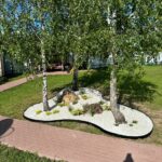 - Озеленение (посадки, создание клумб, ракариев, альпийских горок)